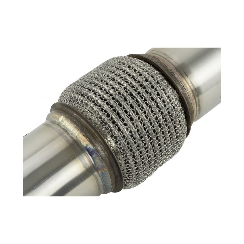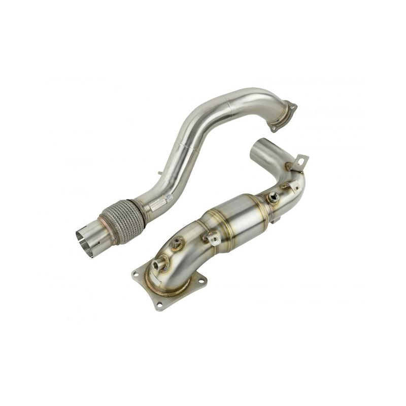 Decades of race engineering are incorporated into every part Skunk2 develops. Built to fit the '18-'20 Honda Civic Type R engine, our Alpha downpipe features the same level of quality and craftsmanship found in all our products. Featuring a large, true 3-inch pipe diameter built from 304 Stainless Steel, each downpipe is CNC Mandrel Bent to provide maximum exhaust flow. Robotically TIG welded joints, heavy duty flanges and a high-quality stainless steel flex section ensure exact fitment and no leaks due to engine vibration and movement under extreme driving conditions. To ensure maximum horsepower gains and uninterrupted exhaust flow, these downpipes come without catalytic converters to eliminate restriction.