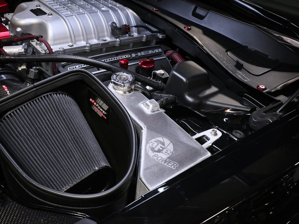 The aFe POWER BladeRunner GT Expansion Tank offers a premium upgrade to the factory expansion tank in your Dodge Charger/Challenger. Say Goodbye to the aging plastics of the stock tank, susceptible to yellowing and brittleness over time, affecting both appearance and reliability. BladeRunner GT Expansion tanks are crafted from 1/8" thick aluminum plates for superior durability and longevity when compared to factory tanks. The incorporation of billet aluminum fittings eliminates weak points, ensuring a secure, leak-free connection. Not only will this tank perform better for longer, but it is also infinitely more appealing in your car's engine bay. This tank is 100% TIG-welded for proven strength and durability as well as providing a smooth, high-quality finish. Attached using high-temp stainless-steel fittings, the sight tube allows for quick, accurate filling and monitoring of fluid levels. With a straightforward installation utilizing all factory connections, the BladeRunner GT Expansion Tank effortlessly bolts into the original location. With a sleek brushed finish, laser-etched aFe POWER logo, and a raw aluminum finish, the BladeRunner GT Expansion Tank not only elevates the overall look but also allows for easy customization. Say goodbye to the hassle of covers that simply conceal the issue.