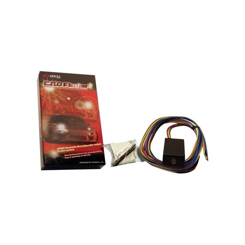 ERO Flasher Headlight Flasher by APEXi®. Ever wanted that night time drift look where the drivers make their headlights strobe different patterns as they blaze by in a mountain of white smoke and rubber? Well this is the part for you. With up to 9 adjustable settings, the APEXi ERO Flasher is inspired by GT Racing in Japan where instead of horns the drivers use their headlights to signal to one another. Working with your stock setup, installation is simple to use and adjustment is with just a turn of a blue LED lit knob.