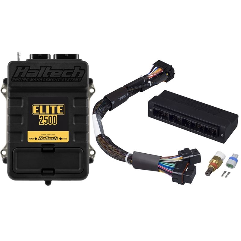Includes: Elite 2500 ECU with DBW and Race Functions, injection molded plastic plug 'n' play adaptor harness, M14 x 1.5 air temp sensor with matching plug and pins, auxiliary I/O 16 Pin TYCO plug and pins, USB programming cable and USB software key.