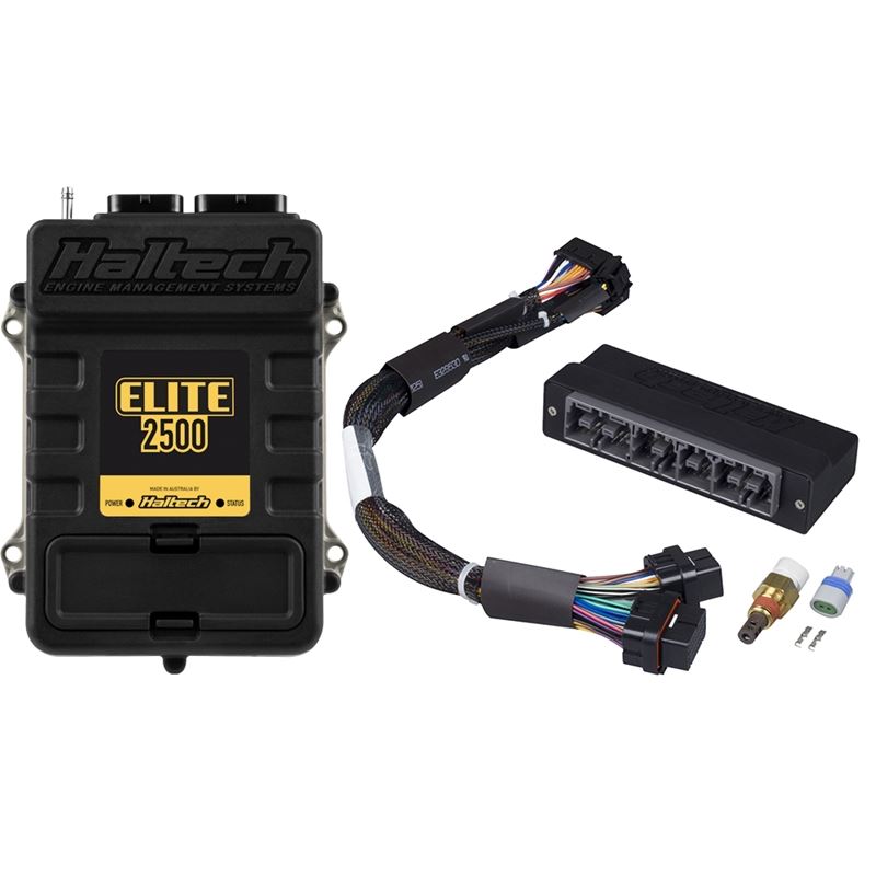 Includes: Elite 2500 ECU with DBW and Race Functions, injection molded plastic plug 'n' play adaptor harness, M14 x 1.5 air temp sensor with matching plug and pins, auxiliary I/O 16 Pin TYCO plug and pins, USB programming cable and USB software key.