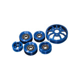 Pulley Kit by GReddy®. Includes: Alternator Power Steering and Water Pump Pulley. Parasitic drag decreases performance. By installing GReddy's lightweight, blue anodized Duralumin Pulleys for the water pump, power steering and alternator, power loses can be kept to a minimum. Ideal for tuned engines, these kits look good and perform well.