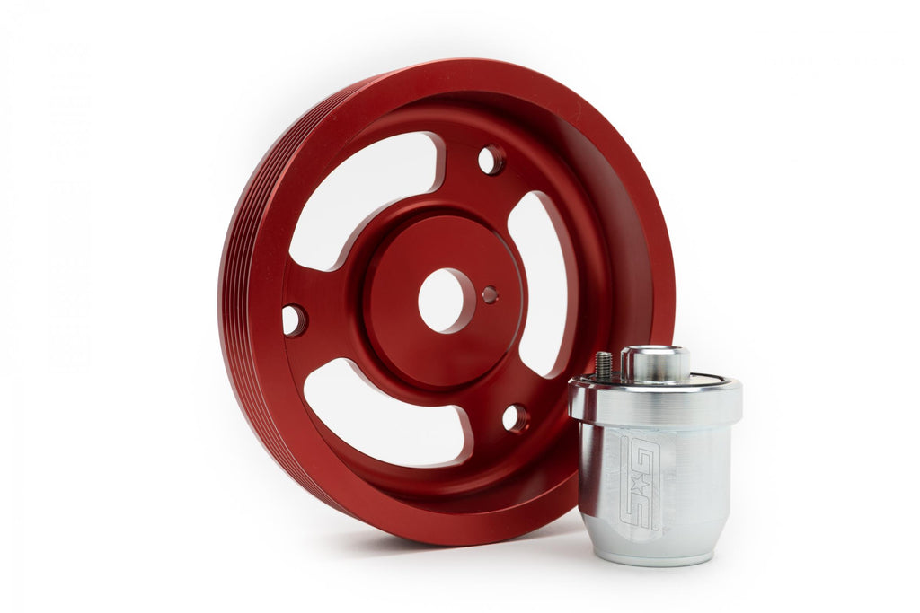 While the 2015-18 Subaru WRX utilizes a standard crank pulley design, which can easily be switched out with the current GrimmSpeed FA Lightweight Pulley, the 2019-21 WRX is a different story. The OEM pulley design for the newer version incorporates a rear hub into the pulley itself, which gives you very limited options when looking to upgrade to an aftermarket pulley. Our Engineers saw this as an opportunity for a plug-and-play solution and got to work. This new GrimmSpeed FA Lightweight Crank Pulley Hub allows 19-21 WRX owners with the heavy OEM one-piece crank pulley/hub assembly to use our popular lightweight crank pulleys. Machined from A311 Steel Alloy and zinc-plated, this beautiful, extremely durable hub will ensure that the oil pump and crank pulley are driven without danger of leaks or failure. Coupled with our LW Crank Pulley, this will take significant weight off the rotating assembly of your FA engine, allowing it to rev more freely. 19-21 WRX Owners can now be among the tens of thousands using a GrimmSpeed-brand Crank Pulley!