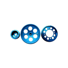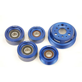 Pulley Kit by GReddy®. Includes: Water Pump, Power Steering and Alternator Pulleys. Parasitic drag decreases performance. By installing GReddy's lightweight, blue anodized Duralumin Pulleys...