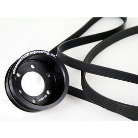 Reducing the diameter of the crankshaft drive pulley or increasing the diameter of the driven accessory pulley underdrives the accessory, slowing its rotational speed and reducing the amount of horsepower it draws. However, the size of the pulleys must be carefully calculated so your accessories continue to operate properly. Everyone wants more horsepower, but not with adverse side effects like reduced power steering assist, an alternator that doesn't charge the battery, or an overheated engine. Our pulley kits have been extensively tested to deliver maximum horsepower with no loss of accessory functionality.
