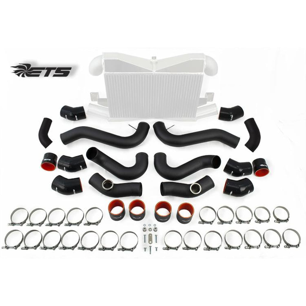 The Extreme Turbo Systems GTR Race/Super Race Intercooler piping kit is made from 304 stainless steel then powder coated with a wrinkle black coating. It is 3" in diameter all the way through the piping. We utilize a piece mandrel bent design for the best flow possible. Our piping is available setup for stock intake manifold, Boost Logic intake manifold or a Greddy intake manifold. You can select this from the options as well as the throttle body and blow off valves you are running.