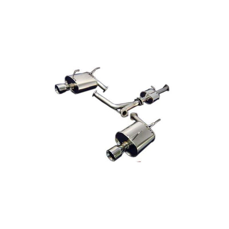 The Revel Medallion Touring-S exhaust system is constructed from full SUS304 stainless steel for corrosion resistance and durability, and 1.5mm wall thickness piping for increased strength and reduced resonation. The piping is also mandrel bent in order to retain the same piping diameter at the bends thus optimizing exhaust flow characteristics. Tested under 93db sound levels under load, the Medallion Touring-S exhaust system gives a clean and deep tone at all RPM ranges while maintaining exhaust efficiency. The Medallion Touring-S exhaust system is fully hand TIG welded and utilizes laser cut flanges that are stronger for more durable connections. The dual-wall angle cut tips have a large inner diameter for modern aesthetics and increased exit flow. Advantex packing material offers superior flow characteristics while offering great sound suppression. It is a highly advanced muffler packing material that greatly excels over other types such as loosely-packed fiberglass materials and composite cube types. It is heat resistant up to 1200andordm; F and extends the functional life of the exhaust system. Straight through muffler design gives better flow for increased power and allows for a lighter weight system with an aggressive tone. Compact muffler canisters offer optimal ground clearance for lowered vehicles.
