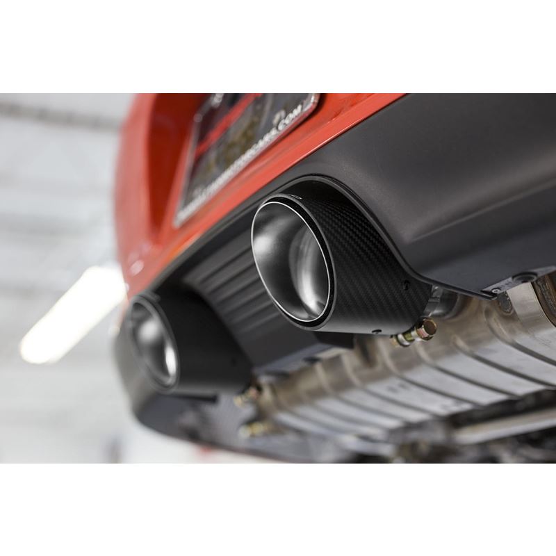 - Genuine carbon fiber and stainless steel 4" tips replace the smaller factory tips for a more aggressive upgraded look