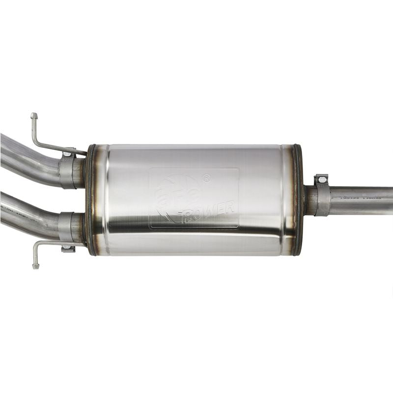 This system produced gains of up to +14 HP and +17 lbs. x Ft. TQ., as measured on our in-house dyno. This cat-back exhaust system is constructed of 3" mandrel-bent 409 stainless steel tubing for maximum strength and durability. This system features a high-flow 409 stainless steel muffler, producing a aggressive sound. Finishing off this exhaust system are dual 4-1/2" diameter polished 304 stainless steel clamp-on exhaust tips. The tips features an aFe POWER logo plate riveted on for a unique style. This system produces an aggressive sound unleashing all available horsepower and torque. Utilizing factory style hangers this system is a direct bolt-on system, which requires no cutting or modifications for a hassle-free installation. Utilizing state-of-the-art computer-aided design technology, this exhaust system is designed for custom, high tolerance factory fitment. 100% MIG-Welded for race-proven strength and durability.