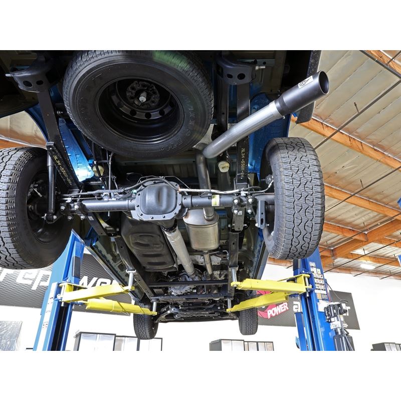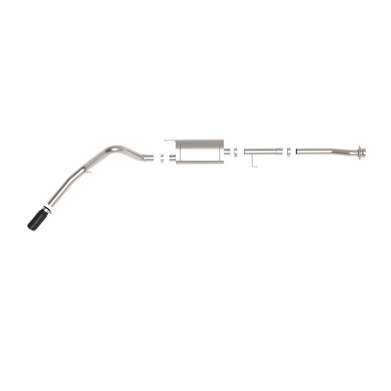 This cat-back exhaust system is constructed of 3 IN - 3-1/2 IN mandrel-bent 409 stainless steel tubing for maximum strength and durability. This system features a high-flow 409 stainless steel muffler, producing a aggressive sound. Finishing off this exhaust system is a 4-1/2 IN diameter black 304 stainless steel clamp-on exhaust tip. The tip features an aFe POWER logo plate riveted on for a unique style. This system produces an aggressive sound unleashing all available horsepower and torque. Utilizing a factory style flange and hangers this system is a direct bolt-on system, which requires no cutting or modifications for a hassle-free installation. Utilizing state-of-the-art computer-aided design technology, this exhaust system is designed for custom, high tolerance factory fitment. 100% MIG-Welded for race-proven strength and durability.