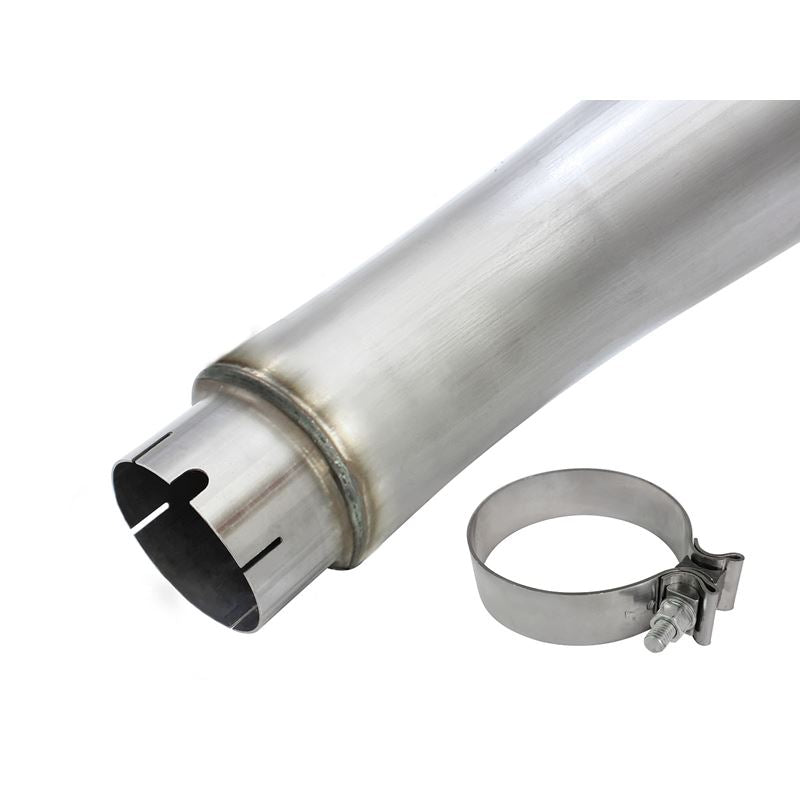 aFe tests its systems on the flow bench and the dynamometer to determine the right pipe size and muffler construction. Then they mandrel bend the pipes to ensure they maintain their shape and size throughout the entire length, to provide smooth, unrestricted airflow. Tubes that are not mandrel bent can lose up to 20% of their diameter in sharp bends. A free-flowing 12" wide muffler is included in systems that feature a muffler. Some systems include a straight muffler delete pipe if a more aggressive sound and maximum flow is desired.