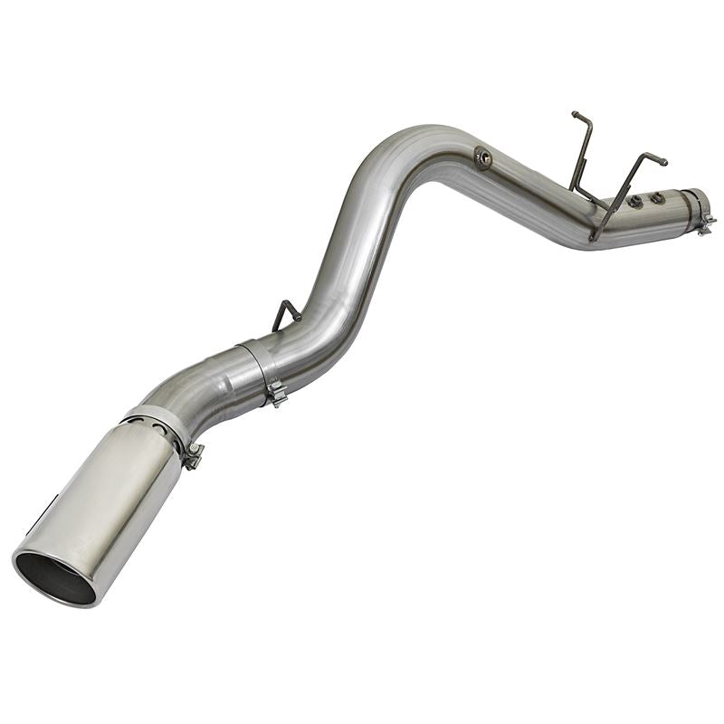 Large Bore HD 409 SS DPF-Back Exhaust System with Single Side Exit (49-44085-P) by aFe. Exhaust System Type: DPF-Back. Exhaust Tubing Material: 409 SS. Main Tubing Diameter: 5". Exhaust System Sound: Moderate. Get increased exhaust flow, more horsepower and torque, improved performance and lower exhaust gas temperatures with the aFe Large Bore HD DPF-Back Exhaust System. aFe dyno tests every system for maximum gains, and constructs them from mandrel-bent stainless steel for maximum flow and long-lasting durability.