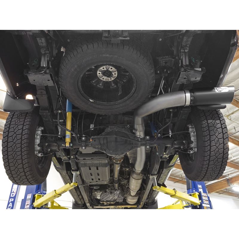 Large Bore HD Stainless Steel DPF-Back Exhaust System with Single Side Exit (49-46112-B) by aFe. Exhaust System Type: DPF-Back. Exhaust Tubing Material: Stainless Steel. Main Tubing Diameter: 5". Exhaust System Sound: Moderate. Get increased exhaust flow, more horsepower and torque, improved performance and lower exhaust gas temperatures with the aFe Large Bore HD DPF-Back Exhaust System. aFe dyno tests every system for maximum gains, and constructs them from mandrel-bent stainless steel for maximum flow and long-lasting durability.