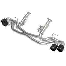 This cat-back exhaust system is constructed of 3" - 2-1/2" mandrel-bent brushed finished 304 stainless steel tubing for maximum strength and durability. Finishing off this exhaust system are quad 4-1/2" diameter black stainless steel clamp-on exhaust tips. The tips feature a laser etched aFe POWER logo for a unique style. This system produces an aggressive sound unleashing all available horsepower and torque. Utilizing factory style flanges and hangers this system is a direct bolt-on system, which requires no cutting or modifications for a hassle-free installation. This cat-back exhaust system uses a heavy duty flex pipe with an internal interlock liner for added strength and durability. A mitered merge x-pipe is used to balance and evenly distribute exhaust pulses traveling through the exhaust system, minimizing exhaust drone and maximizing scavenging. This axle-back exhaust system incorporates factory style AFM (active fuel management) exhaust valves which use the factory exhaust valve motors (not included). The AFM valves helps to control exhaust pulses during cylinder deactivation. Utilizing state-of-the-art computer-aided design technology, this exhaust system is designed for custom, high tolerance factory fitment. 100% TIG-Welded for race-proven strength and durability.