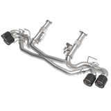This system produced gains of up to +7 HP and +5 lbs. x Ft. TQ., as measured on our in-house dyno. This cat-back exhaust system is constructed of 3" - 2-1/2" mandrel-bent brushed finished 304 stainless steel tubing for maximum strength and durability. This system produces an aggressive sound unleashing all available horsepower and torque. Finishing off this exhaust system are quad 4-1/2" diameter polished stainless steel clamp-on exhaust tips. The tips features a laser etched aFe POWER logo for a unique style. Utilizing factory style flanges and hangers this system is a direct bolt-on system, which requires no cutting or modifications for a hassle-free installation. This cat-back exhaust system uses a heavy duty flex pipe with an internal interlock liner for added strength and durability. A mitered merge x-pipe is used to balance and evenly distribute exhaust pulses traveling through the exhaust system, minimizing exhaust drone and maximizing scavenging. This axle-back exhaust system incorporates factory style NPP dual mode andamp; AFM (active fuel management) exhaust valves which use the factory exhaust valve motors (not included). The valves helps regulate, direct and control the flow of exhaust gases by opening, closing, or partially obstructing passageways depending on throttle position for maximum performance. Utilizing state-of-the-art computer-aided design technology, this exhaust system is designed for custom, high tolerance factory fitment. 100% TIG-Welded for race-proven strength and durability.