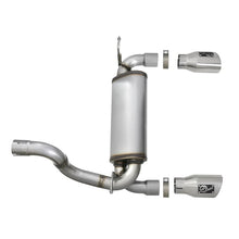Rebel Series 409 SS Axle-Back Exhaust System with Split Rear Exit (49-48067-P) by aFe. Exhaust System Type: Axle-Back. Exhaust Tubing Material: 409 SS. Main Tubing Diameter: 2.5". Exhaust System Sound: Aggressive / Loud. aFe power introduces an all new Rebel Series exhaust system. This Rebel Series cat-back is designed with dual intercooled exhaust tips that exit in front of the rear passenger tire for a unique, aggressive look.