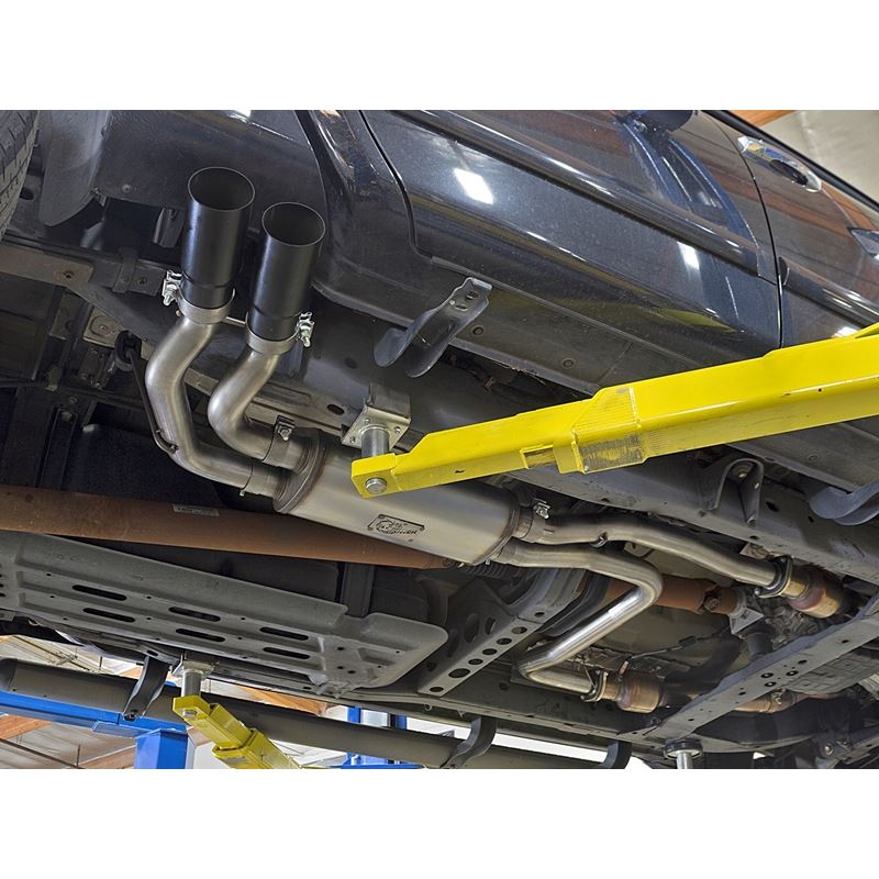Rebel Series 409 SS Cat-Back Exhaust System with Dual Side Exit (49-46124-B) by aFe. Exhaust System Type: Cat-Back. Exhaust Tubing Material: 409 SS. Main Tubing Diameter: 2.5". Exhaust System Sound: Aggressive / Loud. aFe power introduces an all new Rebel Series exhaust system. This Rebel Series cat-back is designed with dual intercooled exhaust tips that exit in front of the rear passenger tire for a unique, aggressive look.