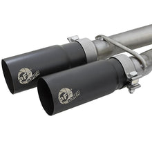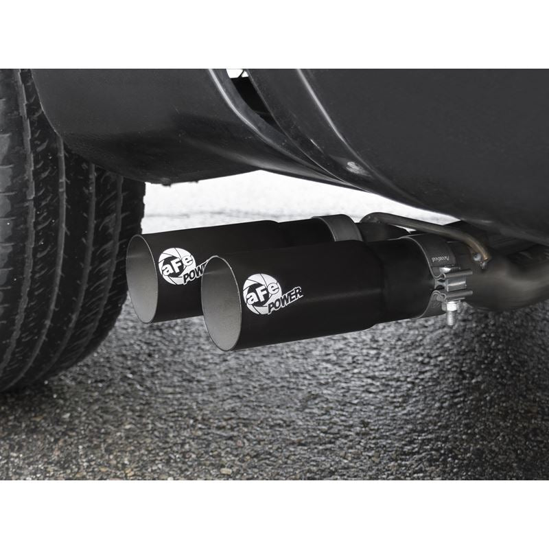 - Middle Exit Dual Black Stainless Steel Tips w/aFe Power Logo
