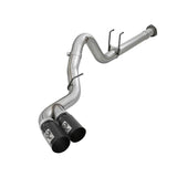This DPF-back exhaust system is constructed of 4 IN mandrel-bent 409 stainless steel tubing for maximum strength and durability. Finishing off this exhaust system are dual 5 IN diameter polished 304 stainless steel intercooled clamp-on exhaust tips. The tips features an aFe POWER logo plate riveted on for a unique style. Some cutting may be required, see instruction sheet for further information. Utilizing a factory style flange and hangers this system mounts directly to factory mounting locations for a hassle-free installation. OE-style bayonet hangers are used to maintain a stable pipe location during high vibration and high heat conditions. The bayonet tip holds the hanger bushing in place for an OE-style fit that does not change with time. 100% MIG-Welded for race-proven strength and durability.