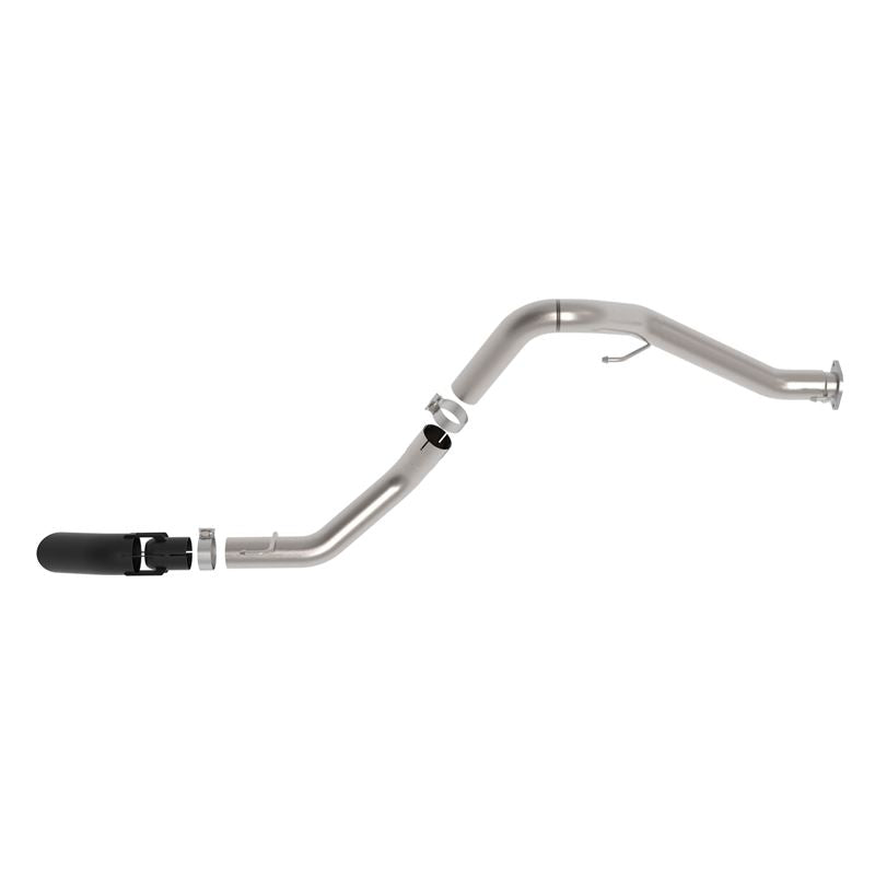 This DPF-back exhaust system is constructed of 3 IN mandrel-bent 304 stainless steel tubing for maximum strength and durability. This exhaust system is finished off with a 4 IN hi-tuck tip that is developed to give you extra clearance during extreme angle climbs or descents, protecting the exhaust over rough terrain. It features a high temperature black powder-coated finish and patent pending intercooled design, that reduces exhaust gas temperatures. Utilizing a factory style flange and hangers this system is a direct bolt-on system, which requires no cutting or modifications for a hassle-free installation. This DPF-back exhaust system is finished off with a hi-tuck tip that is developed to give you extra clearance during extreme angle climbs or descents protecting exhaust over rough terrain. Utilizing state-of-the-art computer-aided design technology, this exhaust system is designed for custom, high tolerance factory fitment. MIG-Welded for race-proven strength and durability.