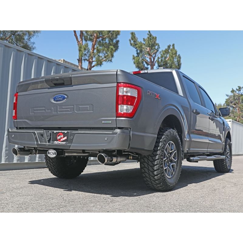 This cat-back exhaust system is constructed of 3 IN mandrel-bent 304 stainless steel tubing for maximum strength and durability. This system features a high-flow 409 stainless steel muffler, producing a aggressive sound. Finishing off this exhaust system are dual 4-1/2 IN diameter polished 304 stainless steel clamp-on exhaust tips. The tips features an aFe POWER logo plate riveted on for a unique style. This system produces an aggressive sound unleashing all available horsepower and torque. Utilizing a factory style flange and hangers this system is a direct bolt-on system, which requires no cutting or modifications for a hassle-free installation. Utilizing state-of-the-art computer-aided design technology, this exhaust system is designed for custom, high tolerance factory fitment. 100% MIG-Welded for race-proven strength and durability.