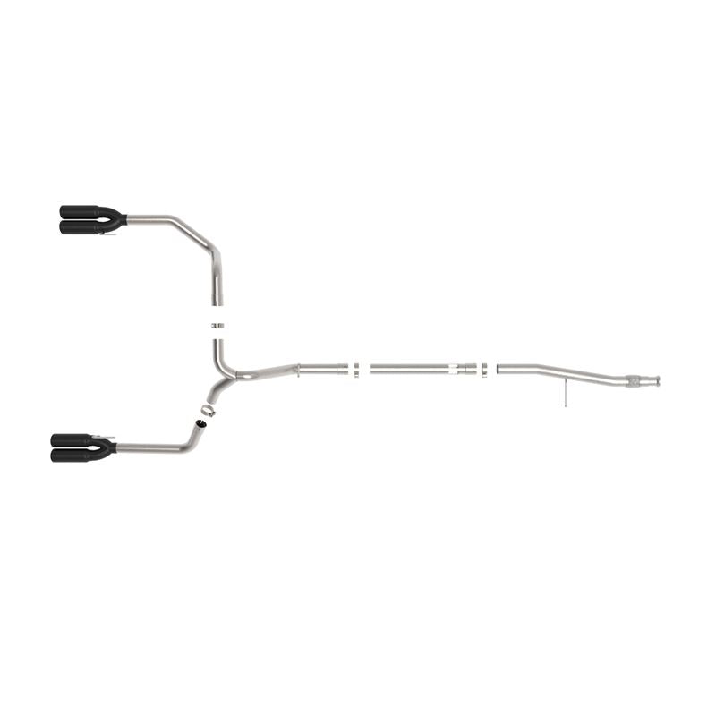 This DPF-back exhaust system is constructed of 3" mandrel-bent 304 stainless steel tubing for maximum strength and durability. Finishing off this exhaust system are dual 4" diameter black 304 stainless steel exhaust tips. The tips feature a laser etched aFe POWER logo for a unique style. Utilizing factory style hangers this system is a direct bolt-on system, which requires no cutting or modifications for a hassle-free installation. This DPF-back exhaust system uses a heavy duty flex pipe with an internal interlock liner for added strength and durability. Utilizing state-of-the-art computer-aided design technology, this exhaust system is designed for custom, high tolerance factory fitment. 100% MIG-Welded for race-proven strength and durability. Intercooled tubing provides reduction in exhaust gas temperatures.