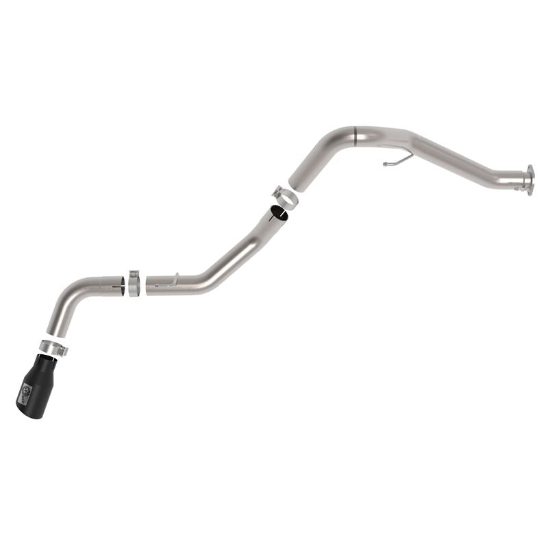 This DPF-back exhaust system is constructed of 3 IN mandrel-bent 304 stainless steel tubing for maximum strength and durability. Finishing off this exhaust system is a 4-1/2 IN diameter black 304 stainless steel clamp-on exhaust tip. The tip features an aFe POWER logo plate riveted on for a unique style. Utilizing a factory style flange and hangers this system is a direct bolt-on system, which requires no cutting or modifications for a hassle-free installation. Utilizing state-of-the-art computer-aided design technology, this exhaust system is designed for custom, high tolerance factory fitment. MIG-Welded for race-proven strength and durability.