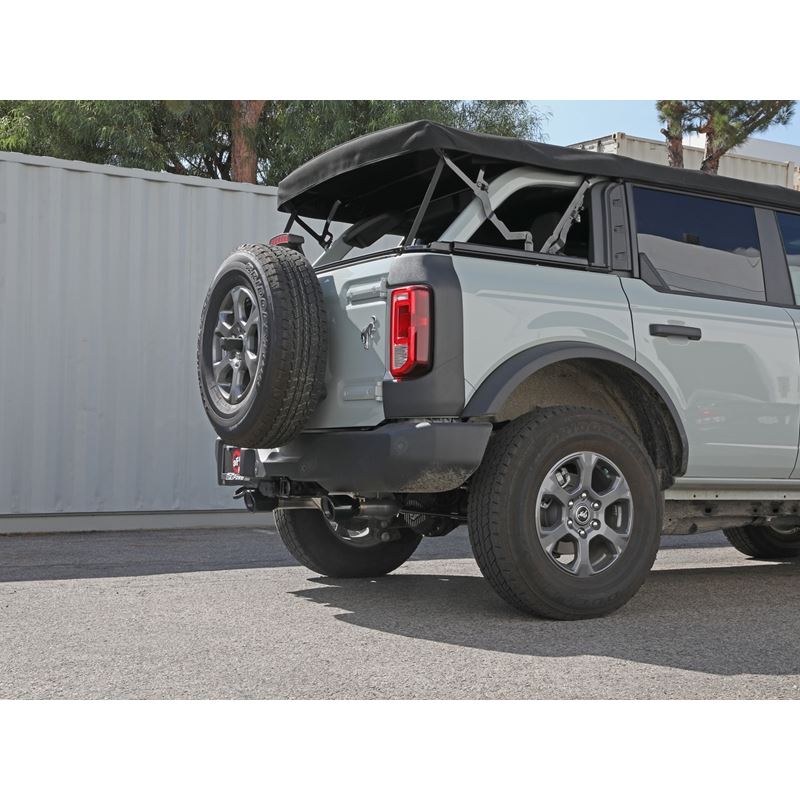 Vulcan Series 3 IN to 2-1/2 IN Stainless Steel Axle-Back Exhaust System Black.This axle-back exhaust system is constructed of 3 IN - 2-1/2 IN mandrel-bent 304 stainless steel tubing for maximum strength and durability. This system features a high-flow 304 stainless steel muffler, producing a mild sound. Finishing off this exhaust system are dual 4 IN diameter black 304 stainless steel clamp-on exhaust tips. The tips features a laser etched aFe POWER logo for a unique style. This system produces a mild sound unleashing all available horsepower and torque. Utilizing factory style hangers this system is a direct bolt-on system, which requires no cutting or modifications for a hassle-free installation. State-of-the-art computer-aided design technology is utilized for precise vehicle fitment. 100% MIG-Welded for race-proven strength and durability.