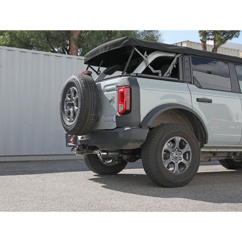 Vulcan Series 3 IN to 2-1/2 IN Stainless Steel Axle-Back Exhaust System Polished.This axle-back exhaust system is constructed of 3 IN - 2-1/2 IN mandrel-bent 304 stainless steel tubing for maximum strength and durability. This system features a high-flow 304 stainless steel muffler, producing a mild sound. Finishing off this exhaust system are dual 4 IN diameter polished 304 stainless steel clamp-on exhaust tips. The tips features a laser etched aFe POWER logo for a unique style. This system produces a mild sound unleashing all available horsepower and torque. Utilizing factory style hangers this system is a direct bolt-on system, which requires no cutting or modifications for a hassle-free installation. State-of-the-art computer-aided design technology is utilized for precise vehicle fitment. 100% MIG-Welded for race-proven strength and durability.