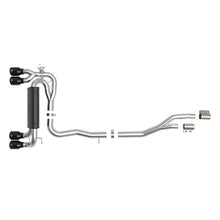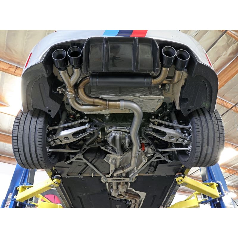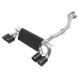 MACH Force-Xp 3 to 2-1/2 IN Stainless Steel Cat-Back Exhaust System w/Black Tip.This cat-back exhaust system is constructed of 3 IN - 2-1/2 IN mandrel-bent brushed finished 304 stainless steel tubing for maximum strength and durability. This system features a high-flow stainless steel muffler, producing a mild sound. Muffler finish may vary. Finishing off this exhaust system are quad 4 IN diameter black 304 stainless steel exhaust tips. The tips features a laser etched aFe POWER logo for a unique style. This system produces an aggressive sound unleashing all available horsepower and torque. Requires cutting factory exhaust. Utilizing factory style hangers this system mounts directly to factory mounting locations for a hassle-free installation. This system incorporates a factory style exhaust valve which use the factory exhaust valve motor (not included). The valve helps regulate, direct and control the flow of exhaust gases by opening, closing, or partially obstructing passageways depending on throttle position for maximum performance. A mitered merge collector is used to decrease turbulence and increase exhaust velocity resulting in increased horsepower, torque and improved throttle response. State-of-the-art computer-aided design technology is utilized for precise vehicle fitment. 100% TIG-Welded for race-proven strength and durability.