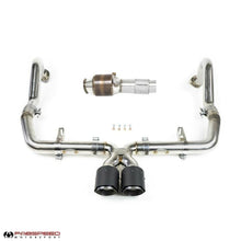 The Maxflo + Sport Cat Package gives you all the performance of the Supersport Turboback Exhaust system but with a much more civilized tone and volume level. The Maxflo exhaust replaces the rear exhaust section with a freer flowing light weight cat-back exhaust. It's all mandrel bent for the smoothest curves, and uses .067" thick wall tubing for the perfect balance between strength and weight savings. Speaking of which, it saves 18 lbs from the car vs the factory system. We also use T304L stainless steel for all the exhaust tubing. This gives the system ultimate corrosion resistance and durability. The sport cat is built with aGerman made 200 cell HJS HD catalyst, which is the top of the line aftermarket solution for catalytic converters. The high flow cat further improves exhaust flow, and helps the turbo spool up faster.