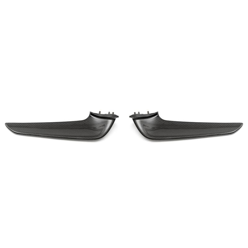 Bolt-on replacement outlet tips for factory exhaust tips constructed of T304L stainless steel and real carbon fiber.