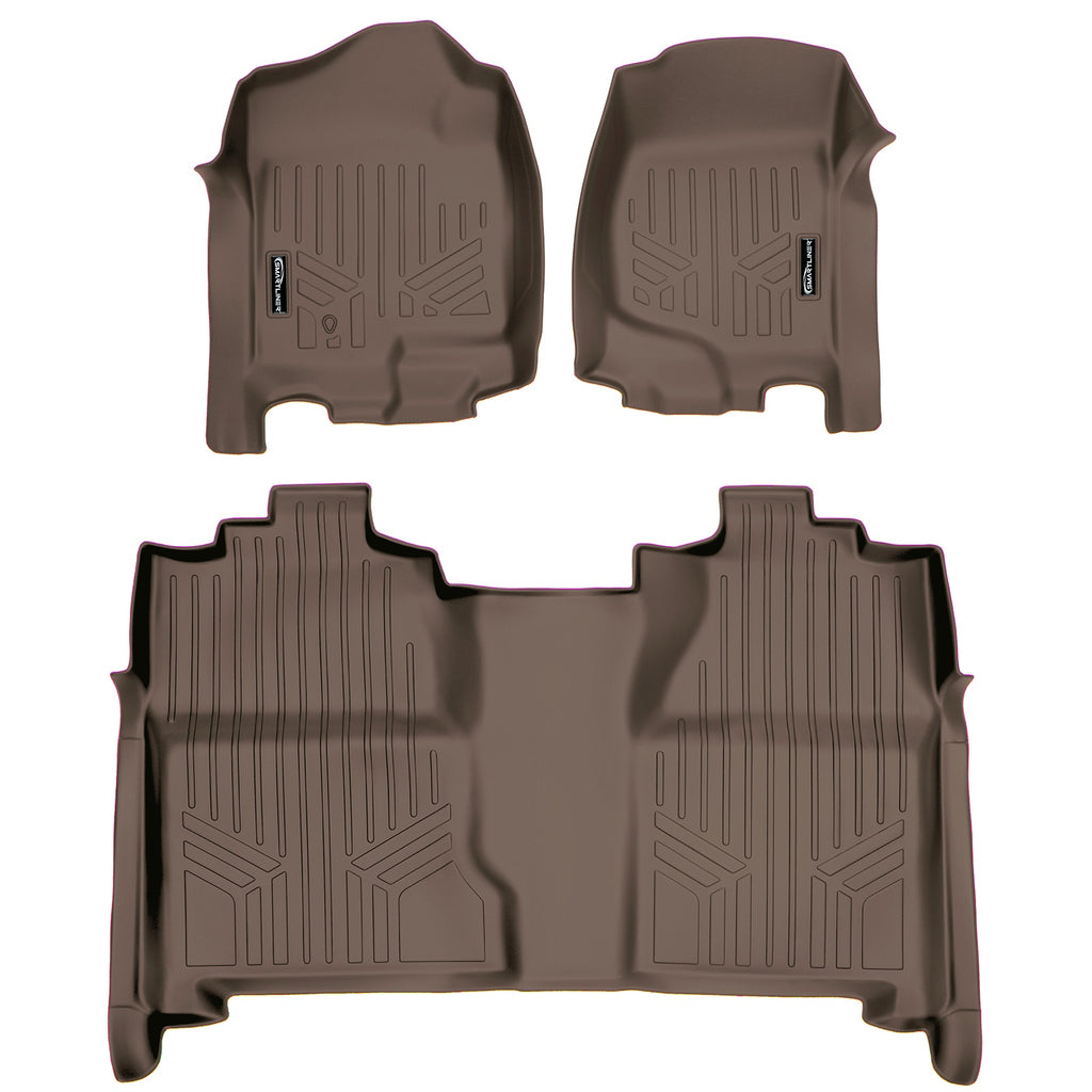 SMARTLINER Floor Mats 2 Row Liner Set Tan Compatible With 2007-2013 Silverado/Sierra 1500 Crew Cab - 2007-2014 2500/3500 HD Crew Cab (SA1015/B1020)