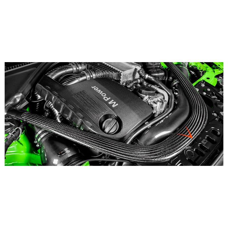 FITMENT: A common issue with a lot aftermarket charge pipes is poor fitment. Ill-fitting charge pipes can crash into the engine cover, making it impossible for the cover to seat properly and, in some cases, may cause impact against the hood. Other sets may also cause clearance issues with aftermarket intakes. By making the conscious choice to craft their charge pipes from a rigid, workable material like carbon fiber (versus silicone or metal), Eventuri can set their own parameters within a confined space. The result is OEM-like fitment with an improvement in overall flow.