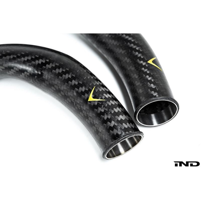 FLOW QUALITY: Eventuri has mastered the art of airflow and they've been able to adapt the lessons they've learned in making intakes to these new charge pipes. Eventuri's design uses smooth curve transitions from the turbo outlets to the charge-cooler while tube turbulence is minimized thanks to some clever design considerations. As an added bonus, internal tube volume has also increased despite the small space available—this allows the turbos to work with less restriction which means more power.