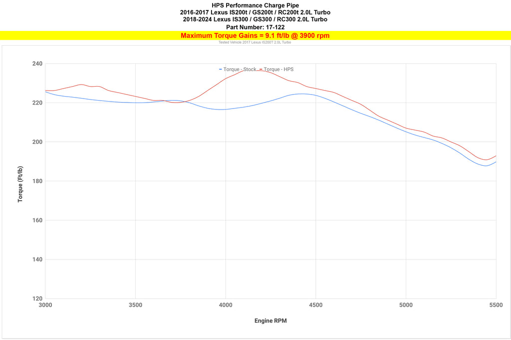 HPS intercooler charge pipe hot side (part # 17-122P), Polish is a simple yet effective performance upgrade for 2016-2017 Lexus IS200t 2.0L Turbo oem restrictive plastic intercooler piping. HPS R and D team reverse engineered the original part to offer a product that ticks all of the boxes; Durability, Performance, and Style. Made from lightweight mandrel bent 2.5" aluminum tubing, the charge pipe kit has less bend and better air flow compared to the oem restrictive design. The bead rolled pipe ends prevent couplers from popping off under boost. It has HPS industrial grade high temperature 4-ply reinforced oil resistant floruolined silicone coupler and heavy duty 100% stainless steel t-bolt clamps to secure the connection. The kit includes a custom made bracket to reinforce the connection (for which you will not find from other charge pipes). HPS turbo charge pipe also includes 1/8" NPT bung to give you the option of running methanol injection or boost gauges (even nitrous systems). Installation can be completed in 90 minutes with basic hand tools and does not require permanent modification or ECU reflash.The intercooler piping kit optimizes and smooth out the air flow, increase horsepower +6.6 Whp,torque +9.1 Ft/lbs and improve throttle response without re-tuning the ECU. Fits 2016-2017 Lexus IS200t 2.0L Turbo.