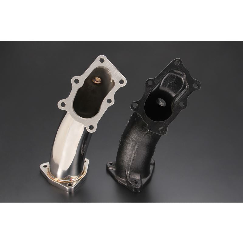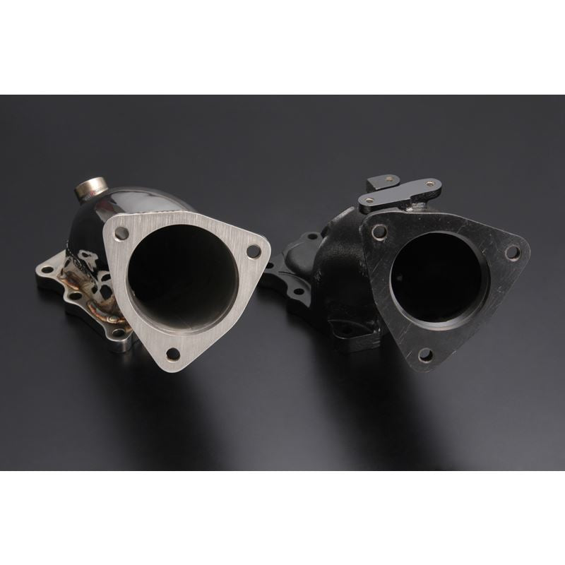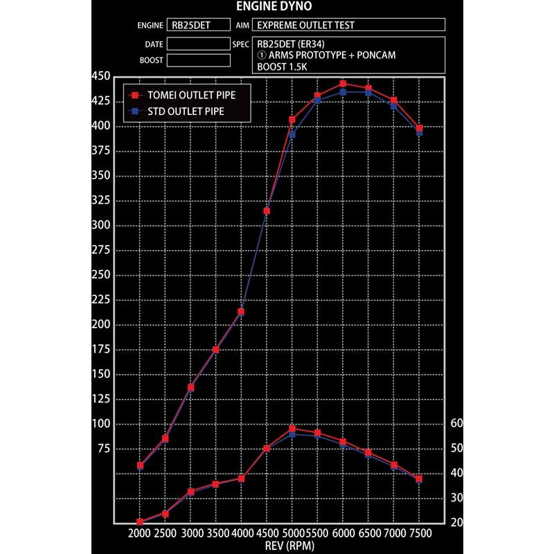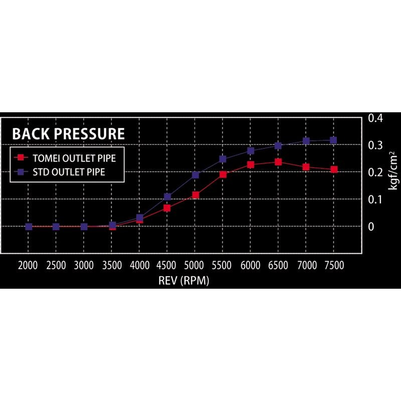 The stock turbine outlet pipes internal diameters are small and restrictive which raises the secondary exhaust pressure. When the secondary exhaust pressure rises it will cause power loss and lack of response with unstable boost pressure. The TOMEI outlet pipes have been specifically designed with the larger internal diameter to improve exhaust gas flow efficiency with the reduction in the secondary exhaust gas pressure. This design has been proven effective on the engine bench dyno R&D as well as in the real world environment as proven on the race tracks with our ARMS turbines.
