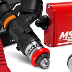 Our selection of custom injectors includes both saturated and peak & hold injectors in a wide range of flow rates. When upgrading to significantly larger fuel injectors you'll need to provide a corresponding increase in fuel flow, and we have the fuel rails, fuel lines & fittings, and high flow fuel pumps to ensure your injectors get an ample supply of fuel. You'll also need to reprogram or upgrade your ECM to take full advantage of your injectors, depending on flow rate, horsepower and whether you're building for the street or the track. We have a complete line of programmers as well as programmable engine management systems for select applications that plug right into the factory wiring harness.