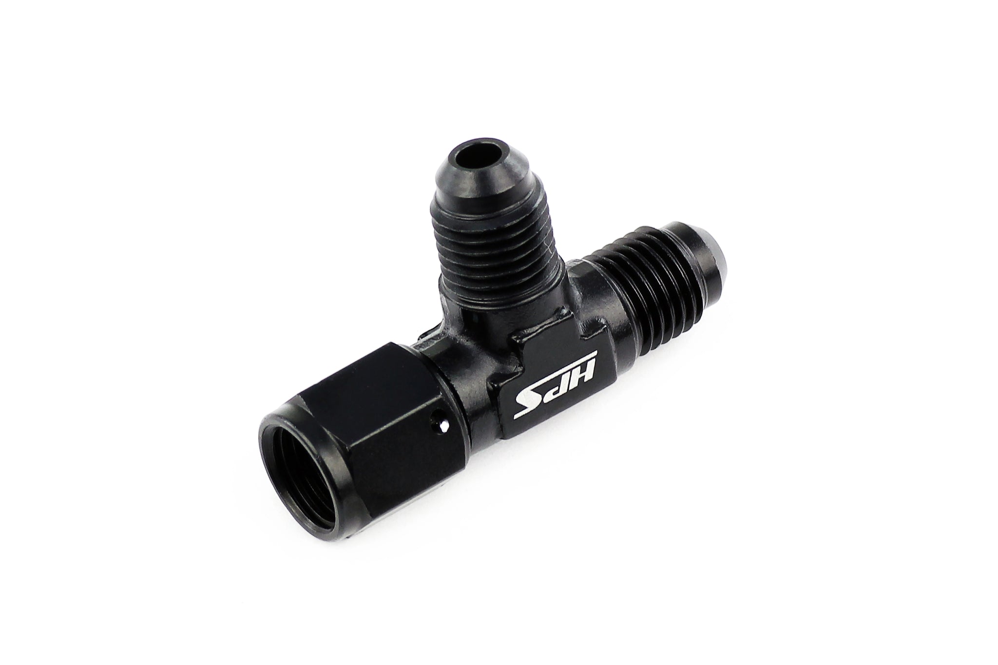 Connect 3 hoses or tubes with 37 degree flares to create a split or a merge with HPS AN Tee adapters. The HPS AN9261 series Tee adapters features a female AN on the run. Compatible with water, coolant, air, oil, and most fuels. Type II anodized black to provide excellent abrasion and corrosion resistance.