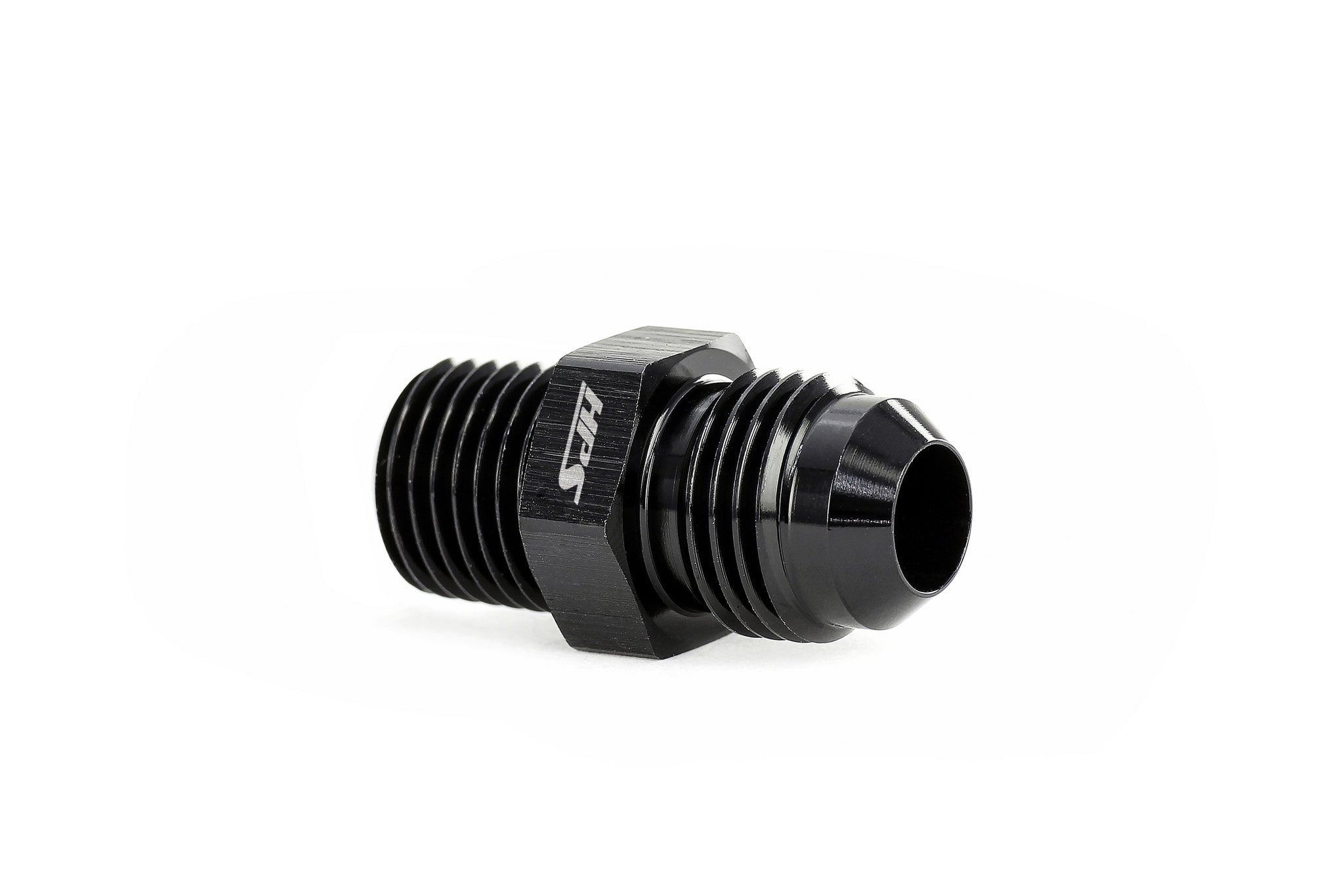 Metric fittings are widely used in automotive applications however repeated servicing will require replacing a washer to ensure that it does not leak. HPS AN to Metric adapter fittings converts your female metric threads to AN style fitting for easy, repeated serviceability. AN style fittings can be installed and removed many times without using any additional sealants or gaskets. HPS AN to Metric adapters are made from 6061 aluminum and Type II anodized black to provide improved abrasion and corrosion resistance.