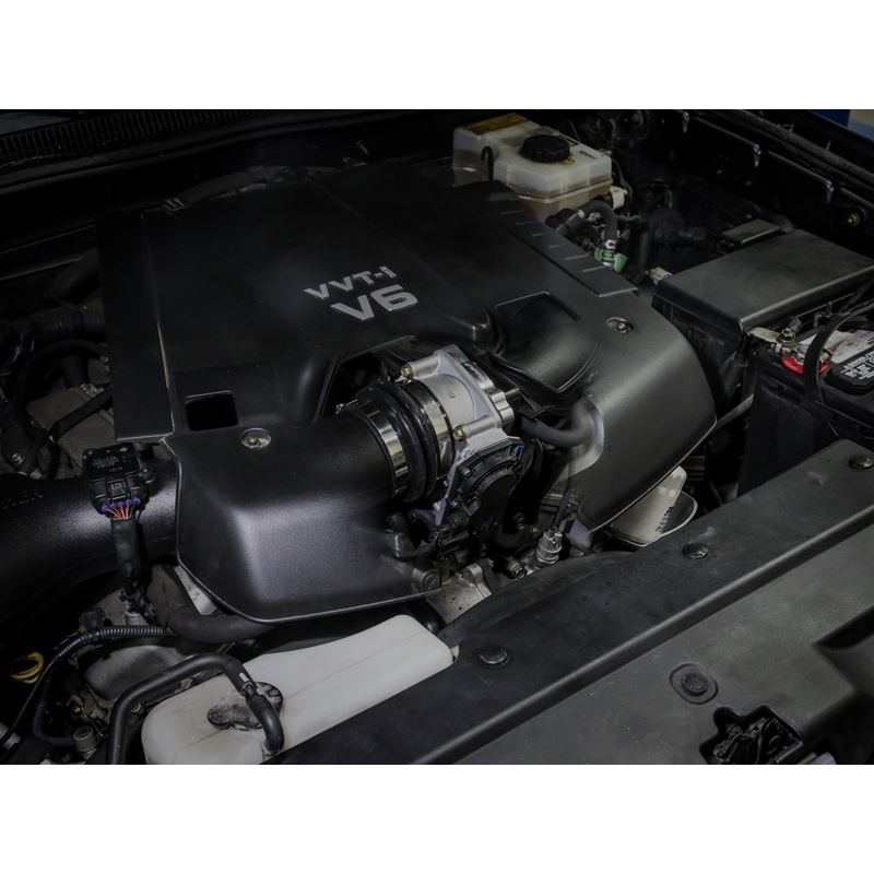 This aFe POWER 76mm Throttle Body and adapter kit improves engine air flow over the stock 65mm throttle body. The extra air flow will increase horsepower and throttle response. This kit will work with OEM or aFe cold air intakes. Performance gains will be more noticeable as more upgrades are added to the vehicle. All adapters are constructed from 6061-T6 billet aluminum and are precision machined for light weight, high strength, and perfect fit and finish. The Serrated/Swirl combination design creates intake turbulence in the combustion chamber which breaks up the fuel creating a more complete combustion cycle increasing horsepower, torque and improving throttle response. This aFe POWER 76mm throttle body kit uses all factory mounting locations providing stability and a hassle-free installation. All needed hardware is included with the kit. Idle will run high on some vehicles but will readjust once the ECU learns to properly control the idle (this can take up to 800 miles on some vehicles).
