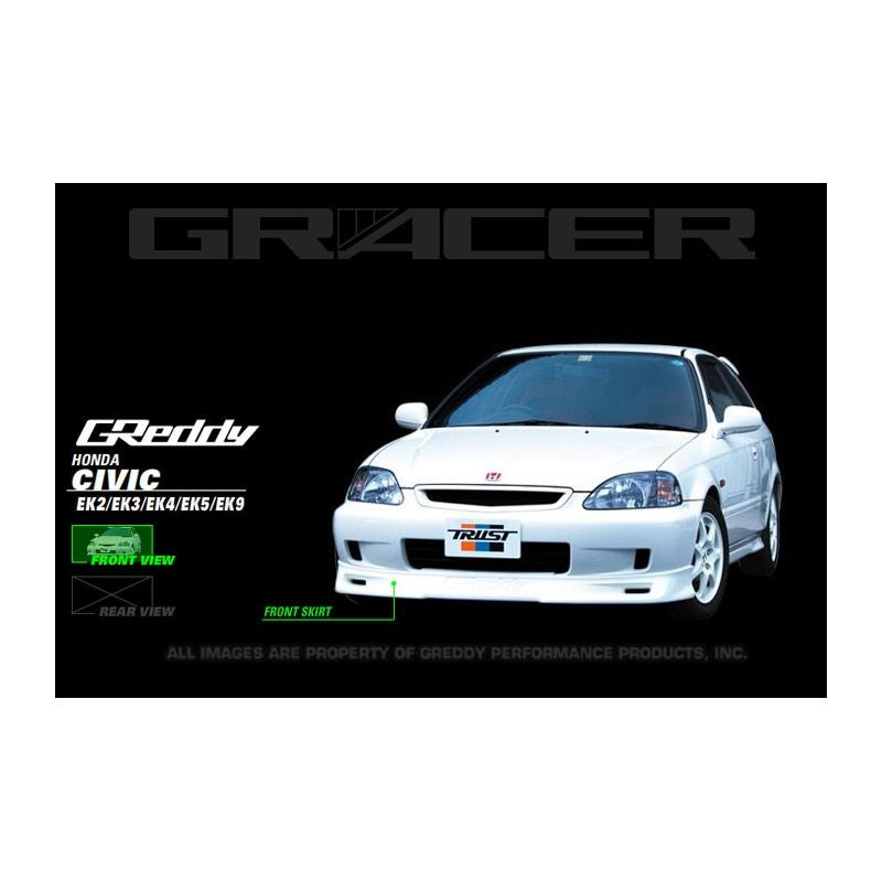 Front Spoilers are the first point to receive airflow resistance; the design of the front spoiler determines the final handling of the vehicle. The GRACER front spoilers are designed to reduce airflow going beneath the vehicle and also direct air to critical areas such as the radiator and intercooler. While driving air turbulence occurs around the front tire, this turbulence can disturb airflow all the way to the back of the vehicle, where it can reduce the function of the rear spoiler. The GRACER Side Skirt is designed to smooth out the air turbulence towards the back of the vehicle, to achieve safe handling of the vehicle.