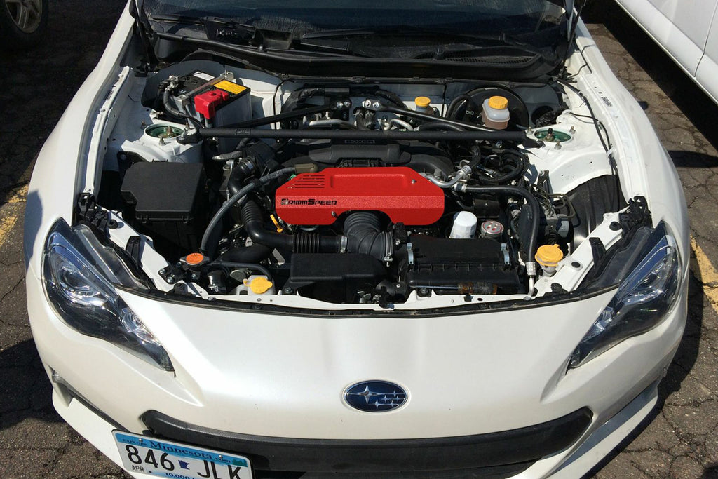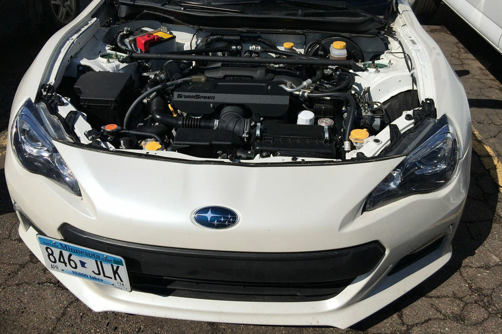 Booya! Add a bit of style and function to your engine bay with this simple but elegant and first of it's kind pulley cover, featuring the world famous GrimmSpeed tool tray. This cover mounts securely in place of your plastic factory covers and its asymmetric design compliments the BRZ/FRS/86 engine bay nicely. Available in brushed stainless steel, as well as our two standard texture DuPont powdercoat finishes, theres an option for everybody. Once again utilizing our in-house FARO Arm along with 3D CAD software, we were able to map the location of not only the mounting points, but also the smaller, critical components in different model years. A belt cover designed without these in mind can wear through hoses or wiring and worse yet, may contact your accessory belts or pulley, causing serious damage. What this means for you is that the best fitting and most complete Pulley Cover on the market is here at last. Its what you can expect from GrimmSpeed, and its what youll get with this kit.