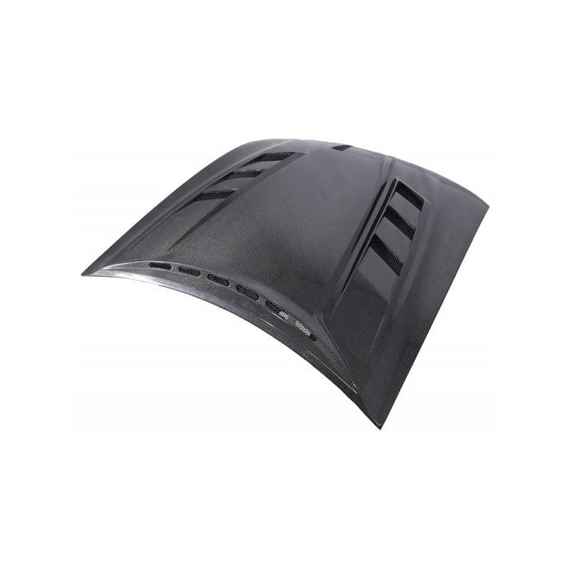 Hoods and Trunks are made from 100% ISO-certified, Grade-A carbon fiber material.All VIS Carbon Fiber Hoods and Trunks are manufactured using a two-part construction design.The top layer is composed of carbon fiber material bonded to the hood surface with high-grade epoxy resin, and finished with an ultra-clear (Poly Shield), UV-protective polyurethane coating for a high gloss finish.A one-piece, smooth underside shell is fused to the top layer enhancing the product's structural integrity.The edges are smoothed by hands to insure good quality finish all around.In 2014, we further improved on this manufacturing process by introducing the Vacuum Infusion Process (V.I.P.), which utilizes a single-mold vacuum to produce parts that are 10-20% lighter than before while improving durability.We are transitioning our full spectrum of carbon parts to use the VIP process so that our customers can enjoy these improved products without incurring a huge cost increase. All VIS Carbon Fiber Hoods and Trunks come with a VIS badge of authenticity.Please be sure to look for the badge when purchasing.Due to the unknown nature of the intended uses of these products, hood pins are required.These products are intended for off-road use only, unless your local and state laws state otherwise.