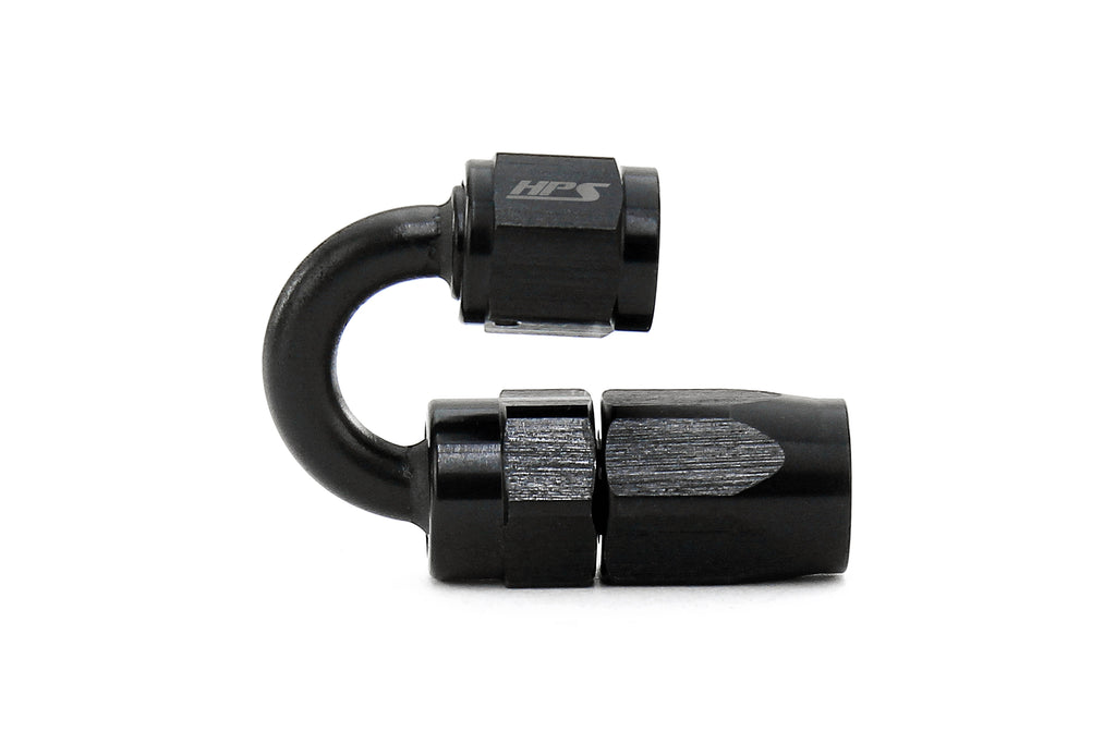 HPS 250 Series Hose End Fittings are designed to fit HPS 250 Series Rubber Flex Hoses. This reusable fitting uses a compression style design that does not cut the hose and is easier to assemble than cutter style fittings. It also features a double swivel design, allowing for unrestricted movement during installation in order to prevent undesired twisting, kinking, and bending. HPS 250 Series 6061 grade aluminum fittings come in Type II anodized black for a clean appearance that is corrosion and scuff resistant.
