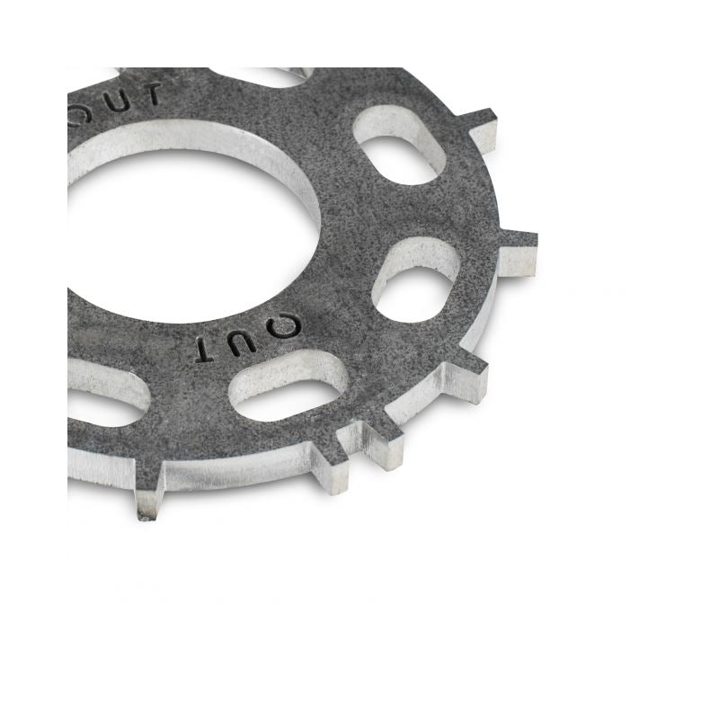 Laser Cut 4340 Chromoly Steel Direct Replacement. How many of you have fallen victim to your K20 or K24 engines timing mysteriously falling out of sync leaving you scratching your head to figure out what is going wrong We too have ran into the same issue and we fixed it! The factory trigger wheel is made of a very porous low carbon steel and the key-way cracks and breaks off during hard or hi-rev accelerations, thus allowing the timing wheel to slip on the crank assembly "visually looking" perfectly fine, yet throwing the timing off! We've even seen these fail on dyno pulls so we know it is happening even on soft start, but during hi-rev pulls. We've even seen them "dish-pan" out. We needed a fix so we made one from laser cut 4130 chromoly. FIXED! Spin that RPM!
