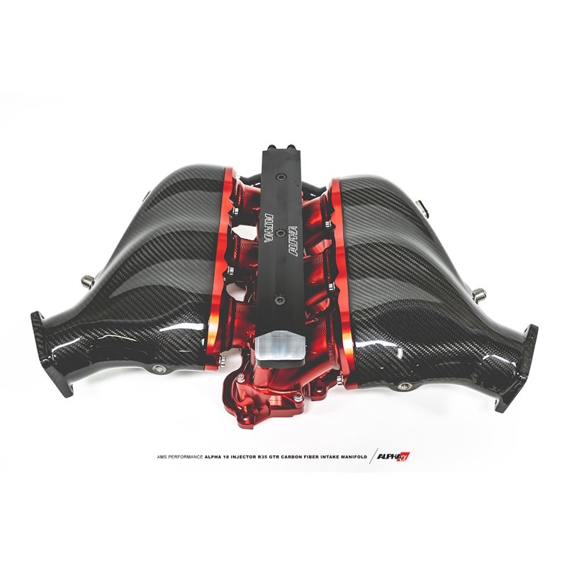 The original Alpha Performance R35 GT-R Carbon Fiber Intake Manifold was painstakingly designed by AMS to be the most efficient and power producing manifold available. Now, AMS has now made it possible to run 18 Injector Dynamics injectors (not included) in the same award winning design! Attention to every detail was accounted for when creating this high performance induction component. On looks alone, you might agree, it makes the perfect centerpiece for your GT-R’s engine bay. However, if you’re familiar with the Alpha product line, you already understand that our aspiration has always been to offer you much more!