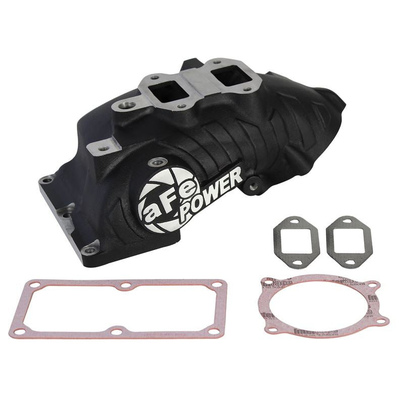 BladeRunner Intake Manifold with Gaskets (46-10073-1) by aFe. The BladeRunner intake manifold represents the next generation in intake manifold design. The BladeRunner intake manifold uses a unique MDV (Multiple Directional Vane) technology to guide the air through the manifold maximizing air flow. Constructed out of cast aluminum and uses a proprietary internal bolt design to help increase the flow and provide a solid seal void of leaks or deformities. The BladeRunner comes with ports for nitrous injection, gauges and other accessories used by hardcore enthusiasts. The manifold comes with a crossover pipe plug and can be used with an EGR Cooler Delete. In recent testing the BladeRunner intake manifold outflowed the factory intake by 90%. This intake is specifically designed to provide increased intake volume and velocity while eliminating the factory Throttle Control Valve located at the inlet of the stock intake manifold.