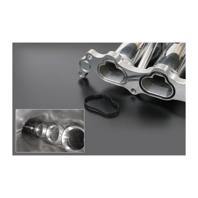 Designed specifically for custom applications with 2JZ engine transplants, the GReddy 2JZ Pro Surge Tank Kit offers the versatility to best match the throttle-body inlet angle and vacuum/air ports for your engine bay. This Pro kit includes 4.0l tank capacity with a large 90mm throttle-body, and top feed fuel rail, and necessary weld-on flanges. For additional rigidity during high boost applications, it uses thick 3mm formed metal tank that is welded to a precision machined, grooved base, with six individual, internal velocity-stacks. Also pre-welded are the tuned primary runners and intake manifold flange with fuel injector ports. Another key feature is the unique, purpose-built fuel-resist, ring-type gaskets that seal the manifold to the head.