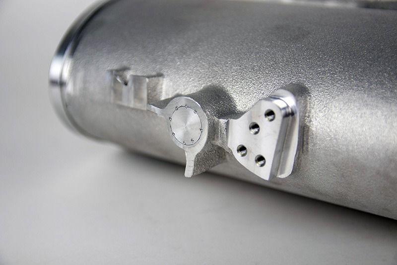 Plenum-with-Castings_smEarly implementation of diversion splitters were cast and polished then installed inside the OE factory Porsche air distributor. These early "shoe horned" splitters yielded power gains but still required a larger opening near the throttle body for optimum performance. This is where today's single cast and machined IPD Plenum really performs and warranted a patent design.